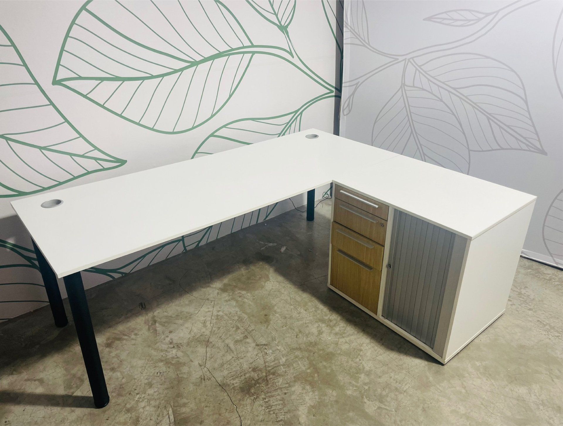 - Desk + credenza & drawers